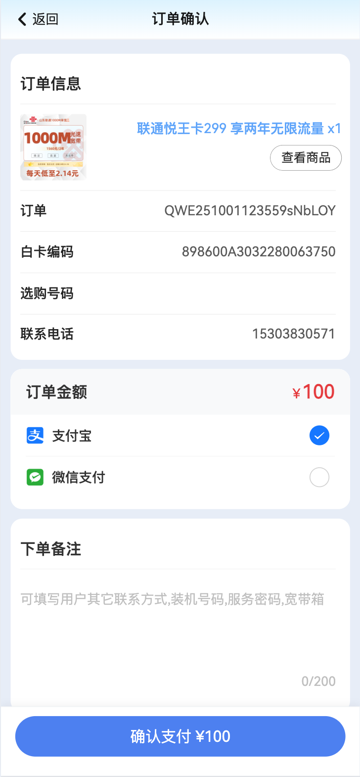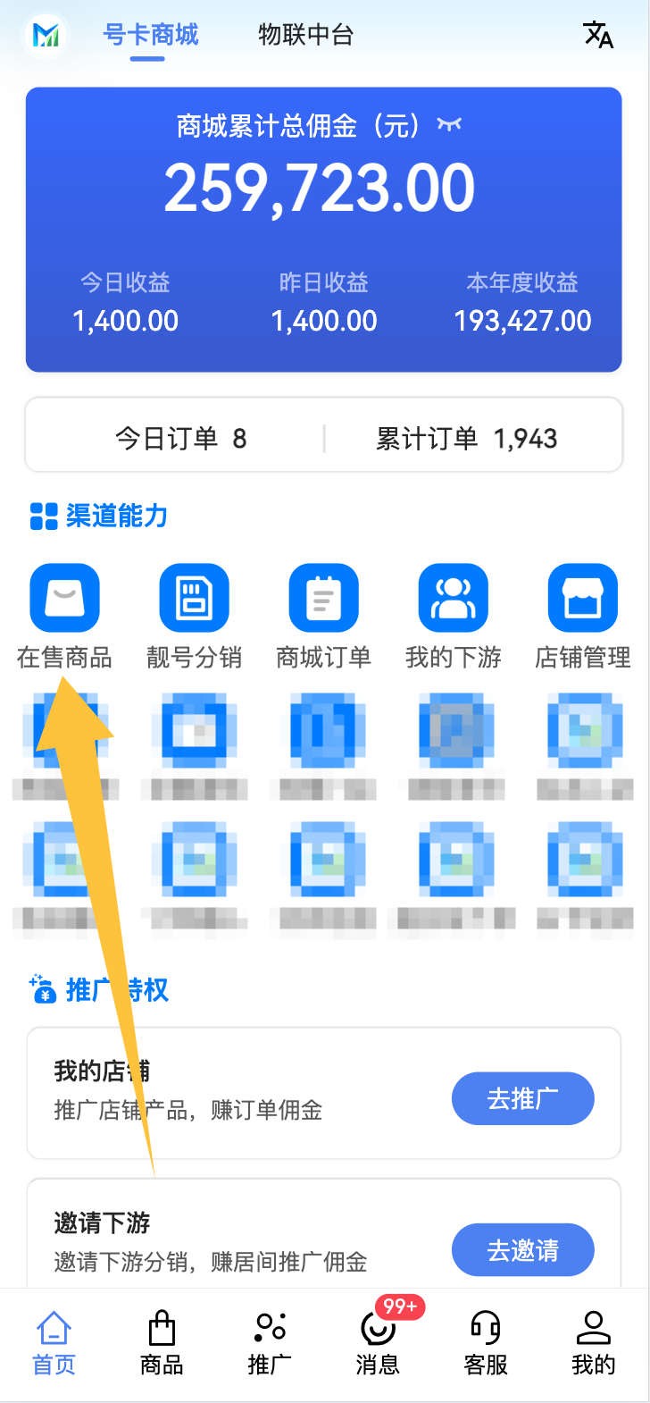 - 进入在售商品,选择实体卡类目,找到要下单的套餐,点击去下单