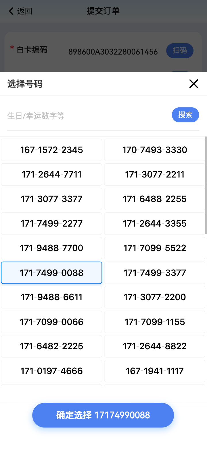 选号模式 | 默认不支持选号。 如果采集过程允许用户选号请固定选【全国归属地】,同时需要为商品绑定号码池或导入预售单时为 ICCID 绑定可选号的号码池,二选一 |
