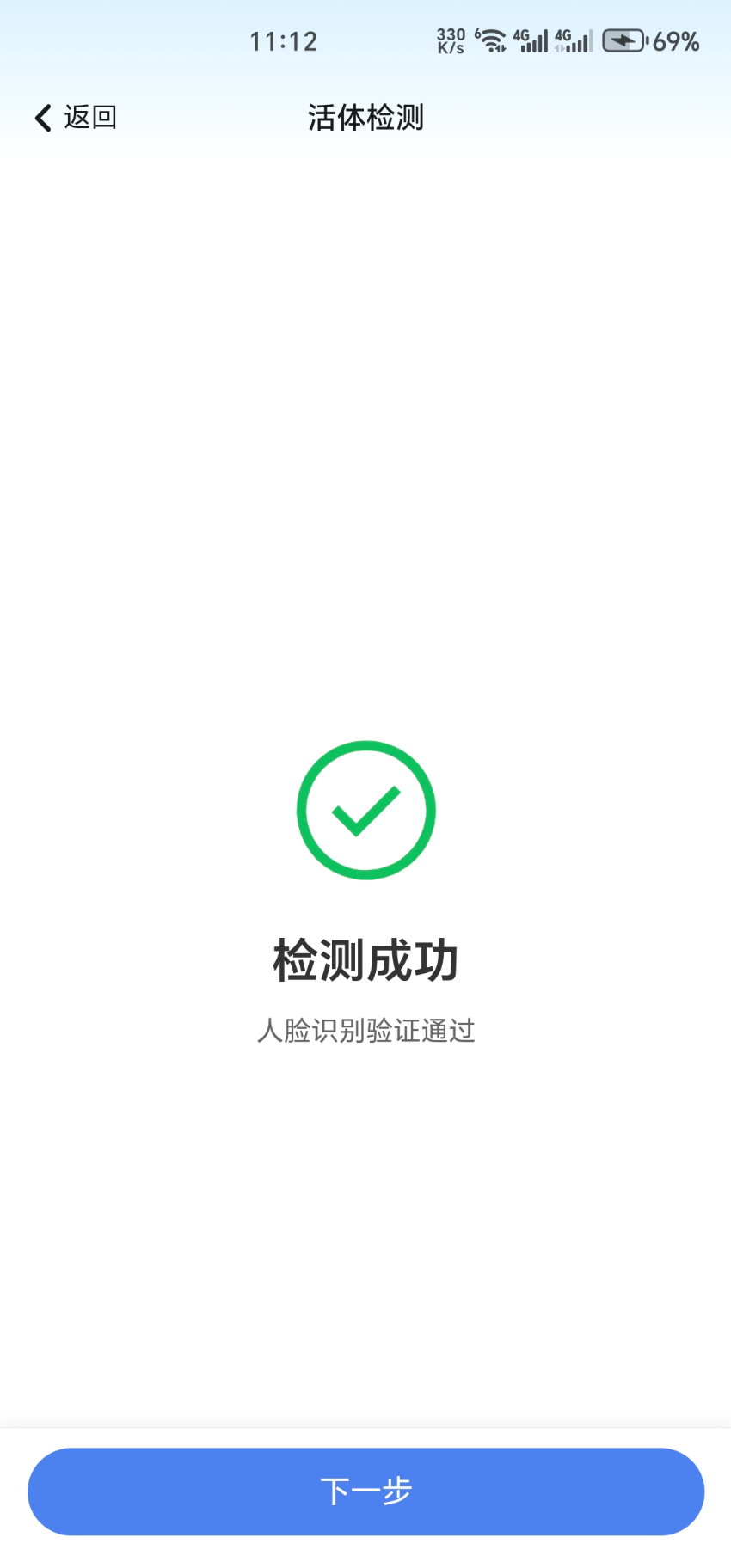 - 活体检测,引导客户完成人脸扫码,通过身份证信息与公安库进行比对是否为同一人